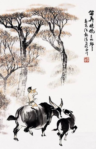 草铺横野六七里,笛弄晚风三四声。出自唐代诗人吕岩作品《牧童》。这首诗展示了一幅鲜活的牧童晚归休憩图,反映了牧童生活的恬静与闲适。表达了诗人内心世界对远离喧嚣、安然自乐的生活状态的向往。
