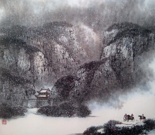 云横秦岭家何在?雪拥蓝关马不前。