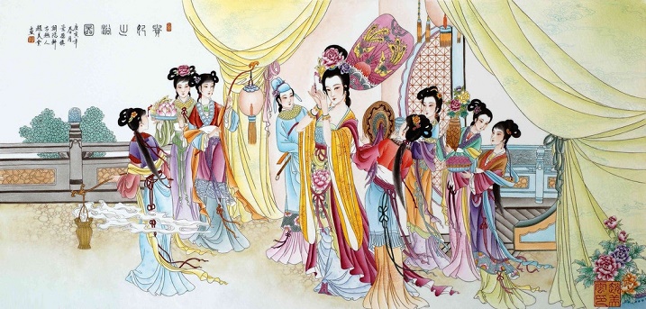 “万国笙歌醉太平”,此言唐玄宗整日与杨贵妃在骊山游乐,不理朝政,举国上下也沉浸在一片歌舞升平之中。“倚天楼殿月分明”,此言骊山上宫殿楼阁高耸挺拔,在月光下显得格外分明。“云中乱拍禄山舞”,此句语带讥刺地说:想当年安禄山在骊山上觐见唐玄宗和杨贵妃时,在大殿中拖着肥胖的身体翩翩作胡旋舞,竟引发了杨贵妃爽朗的笑声。“风过重峦下笑声”,此言那笑声随风飘扬越过层层峰峦,在山间久久回荡。