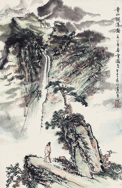 这时脚夫仆人都因山路险阻而落在后头,我也停住不再往上。但一路上的奇景,又不知不觉地吸引我独自前往。已经登上山头,就望见有座佛寺的屋檐犹如飞鸟展翅一般,即是文殊院。这也是我上一次来想登览而又未登上的地方。文殊院左面是天都峰,右面是莲花峰,背面靠着玉屏峰,天都、莲花两峰的秀丽景色,简直伸手可摘。环顾四周只见奇峰错杂排列,众多的山谷纵横交错,确是黄山景色最引人入胜的地方。如果不是这次重游,怎晓得黄山竟是如此之神奇?恰遇云游和尚澄源到来,游兴很高。时间已过午,仆人们才上来,大家站在文殊院前,指点着左右两座山峰。寺里的和尚说:“天都峰虽近却无路可攀,莲花峰可登但路途遥远,只好在附近看看天都峰,明日再登上莲花顶。”我不愿听从,决心一游天都峰,便夹持着澄源和仆人,仍从山峡小路而下,到达天都峰旁。再从经溪水冲击而流动的山石中俯伏爬行而上,或抓住野草,或拉着荆棘,越过丛集的石块,攀上削立的山崖,每到连手脚都无法着落的地方,澄源总是抢先登上,再垂手接应。每每想到上山既如此艰难,下山更怎么得了?但终于也顾不了这许多。经历几回艰险,终于到达天都峰顶。只见顶上有块崖石象削壁一般直立而起,约高数十丈。澄源寻视其侧面,发现有石阶,便扶我登上。唯见千山万岭无不俯伏在下,独有莲花峰和它抗衡。这时浓雾时起时止,每一阵飘过来,则连对面也看不见。远眺莲花等诸山峰,多半淹没在云雾里。唯独登上天都峰,我走到峰前,云雾则移到峰后,我来到峰后,云雾则出于峰左。峰顶上还有生长得曲折挺拔、横纵交错的松树,而柏树则虽干大如臂,也无不平贴在崖石上,犹如苔藓一般。山高风猛,雾气飘忽不定。俯视诸山峰,一会儿透露出碧绿的尖顶,一会儿又淹没为一片银海。再眺望山下,只见阳光明媚,仿佛别是一个世界。暮色渐渐降临了,于是大家两足伸前,双手向后贴地,坐着往下滑;到了极险之处,澄源便肩手并用以相接应。度过危险地带,下到山坳时,夜色已笼罩大地。再从山峡间登栈道而上,宿于文殊院。
