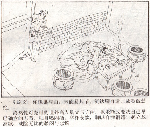下面又反接找补。上文说“身逢尧舜君,不忍便永诀”,意思是:“尧舜之世,何尝没有隐逸避世的,例如许由、巢父。巢父、许由是高尚的君子,我虽自愧不如,却也不能改变我的操行。”这两句一句一折。既不能高攀稷契,亦不屑俯就利禄,又不忍像巢父、许由那样跳出圈子去逃避现实,只好饮酒赋诗。沉醉或能忘忧,放歌聊可破闷。诗酒流连,好像都很风雅,其实是不得已而为之。诗篇开首到此,进退曲折,尽情抒怀,诗人热烈的衷肠非常真实。