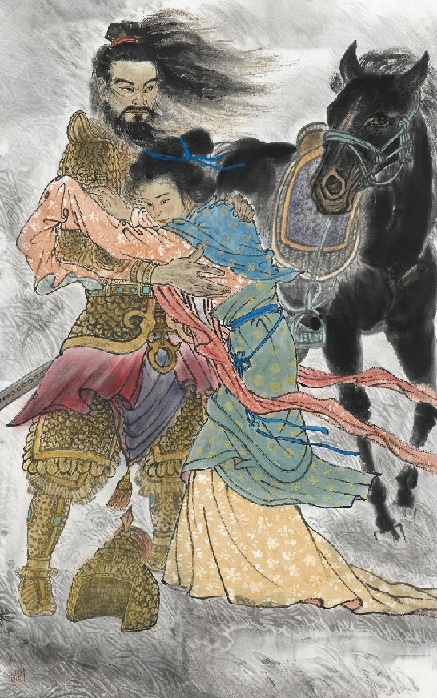 然而,在第二、三句里,这位盖世英雄却突然变得苍白无力。这两句是说:由于天时不利,他所骑的那匹名马——乌骓马不能向前行进了,这使他陷入了失败的绝境而无法自拔,只好徒唤“奈何”。“骓”的“不逝”竟会引起这样严重的后果,是因为在项羽看来:他之得以建立如此伟大的功绩,最主要的依靠说是这匹名马;有了它的配合,他就可以所向无敌。换言之,他几乎是单人独骑地打天下的,因此他的最主要的战友就是乌骓马,至于别人,对他的事业所起的作用实在微乎其微,他们的向背对他的成败起不了多少作用,从而他只要注意乌骓马就够了。这也就意味着:他的强大使得任何人对他的帮助都没有多大意义,没有一个人配作他的主要战友,这种傲岸无人可比,可谓天地间唯我独尊。不过,无论他如何英勇无敌,举世无双,一旦天时不利,除了灭亡以外,他就没有别的选择。在神秘的“天”的面前,人是非常渺小的;即使是人中间的最了不起的英雄,也经不起“天”的轻微的一击。