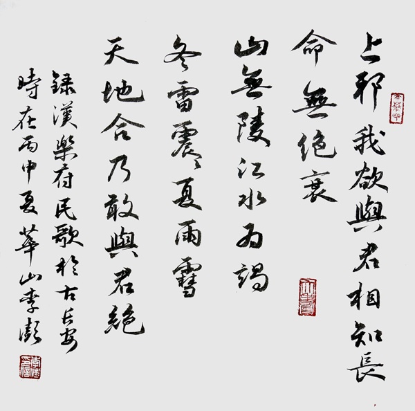 山无陵,江水为竭,冬雷震震,夏雨雪,天地合,乃敢与君绝!