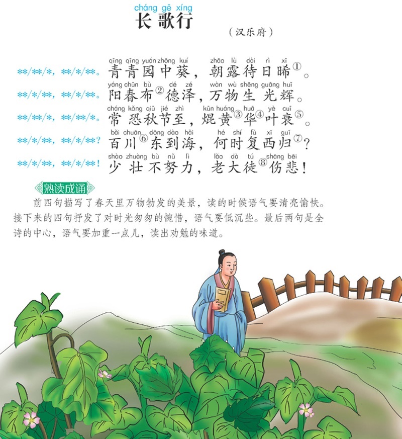 ⑴长歌行:汉乐府曲题。这首诗选自《乐府诗集》卷三十,属相和歌辞中的平调曲。