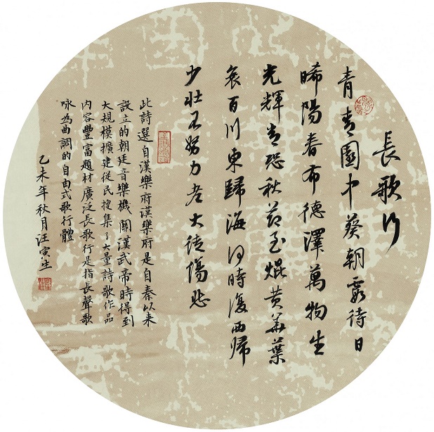 乐府是自秦代以来设立的朝廷音乐机关。它除了将文人歌功颂德的诗配乐演唱外,还担负采集民歌的任务。汉武帝时得到大规模的扩建,从民间搜集了大量的诗歌作品,内容丰富,题材广泛。此诗是汉乐府诗的一首。长歌行是指“长声歌咏”为曲调的自由式歌行体。