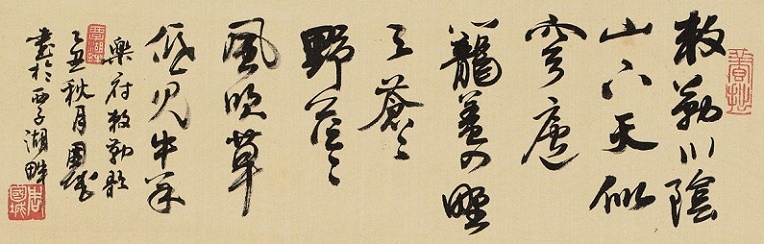 ⑤笼盖四野(yǎ):笼盖,另有版本作“笼罩”(洪迈《容斋随笔》卷一和胡仔《苕溪渔隐丛话》后集卷三十一);四野,草原的四面八方。