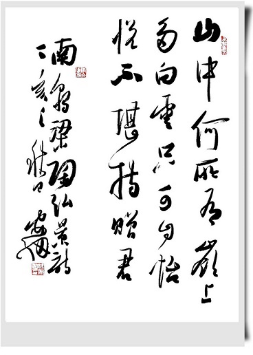这是陶弘景隐居之后回答齐高帝萧道成诏书所问而写的一首诗。首句即照应题目。齐高帝之问,带有劝其出山,颇不以弃功名、隐林泉为然。而诗人则平平淡淡地回答:“岭上多白云。”话虽简淡,含意却很深。是的,山中能有什麼呢?没有华轩高马,没有钟鸣鼎食,没有荣华富贵,只有那轻轻淡淡、飘飘渺渺的白云。在迷恋利禄的人看来,“白云”实在不值什麼;但在诗人心目中却是一种超尘出世的生活境界的象徵。然而“白云”的这种价值是名利场中人不能理解的,唯有品格高洁、风神飘逸的高士才能领略“白云”奇韵真趣。 所以诗人说:“只可自怡悦,不堪持赠君。”言外之意,我的志趣所在是白云青山林泉,可惜我无法让您理解个中情趣,就像山中白云悠悠,难以持赠一样。言词间颇替齐高帝感到惋惜。——诗人以这种委婉的方式表达了谢绝出仕之意。 此诗写得轻淡自然,韵味隽永,历代传诵。