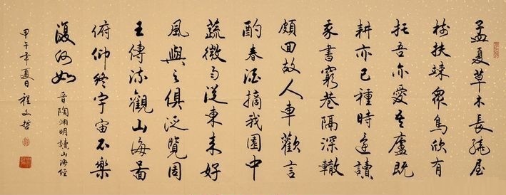 与诗人生命交融一体的不仅是草木飞鸟,还有共享良辰美景的朋友,诗人体验到不仅是融入自然的怡然兴致,还有书中带来的时间长河中积淀的风物赏识,这样的人生快乐,在昏昏然的官场上是无法得到的。诗人在与天地与古今与人与物的交融中,合奏出宇宙运行中至高至美的欢乐篇章。