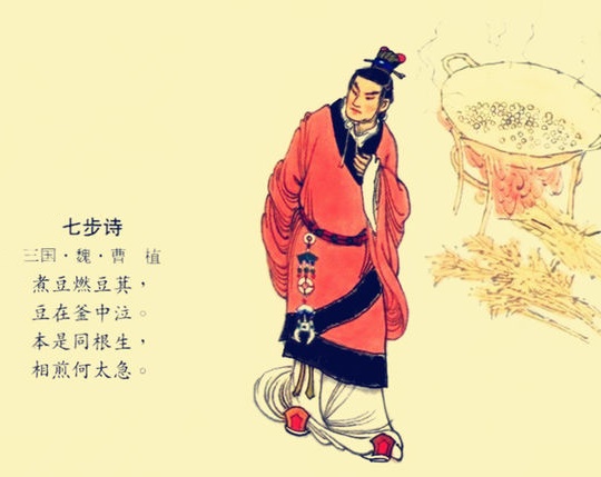 煮豆来做豆羹,过滤的豆子做成汁。豆杆在锅下燃烧,豆子在锅里哭泣。豆杆和豆子本是从同一条根上生长出来的,为什么要相互煎熬逼迫的那么狠呢?