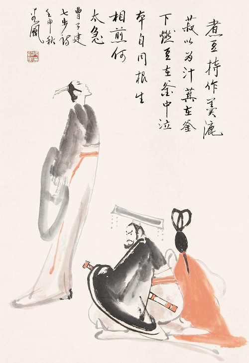 当然,此诗的风格与曹植集中的其他诗作不尽一致,因是急就而成,所以谈不上语言的锤炼和意象的精巧,只是以其贴切而生动的比喻,《七步诗》我们明白而深刻的寓意赢得了千百年来的读者的称赏。
