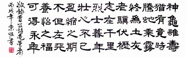 《龟虽寿》更可贵的价值在于这是一首真正的诗歌,它开辟了一个诗歌的新时代,汉武帝罢黜百家,独尊儒术,把汉代人的思想禁锢了三四百年,弄得汉代文人不会写诗,只会写那些歌颂帝王功德的大赋和没完没了地注释儒家经书,真正有感情,有个性的文学得不到发展。直到东汉末年天下分崩,风云扰攘,政治思想文化发生重大变化,作为一世之雄而雅爱诗章的曹操,带头叛经离道,给文坛带来了自由活跃的空气。他“外定武功,内兴文学”,身边聚集了“建安七子”等 一大批文人,他们都是天下才志之士,生活在久经战乱的时代,思想感情常常表现得慷慨激昂。正如《文心雕龙·时序》说:“观其时文,雅好慷慨,良由世积乱离,风衰俗怨,并志深而笔长,故梗慨而多气也。”尤其是曹操,鞍马为文,横槊赋诗,其诗悲壮慷慨,震烁古今,前无古人,后无来者。这种充满激情诗歌所表现出来的爽朗刚健的风格,后人称之为“建安风骨”,曹操是最突出的代表。千百年来,曹操的诗就是以这种“梗慨多气”风骨及其内在的积极进取精神,震荡着天下英雄的心灵。也正是这种可贵特质,使建安文学在中国文学史上闪灼着夺目光彩。钟嵘将曹操置于下品,主要是嫌其“古直”而少文彩,殊不知曹操这样一位豪气盖世的英雄,是不屑于雕章啄句的。钟嵘六朝时人,当时文学之士很讲究文彩华美,所谓“俪采百字之偶,争价一句之奇”,钟嵘对曹操的评价过低,显然是时代风气使然。我们知道,任何文学--包括诗歌在内,文彩较之内容,毕竟是第二位的。关于曹操的文学地位,过去常为其政治业绩所掩,而不为人重视,其实,他在中国文学发展史上,是有卓越贡献的人物,特别对建安文学有开创之功,实在是应当大书一笔的。