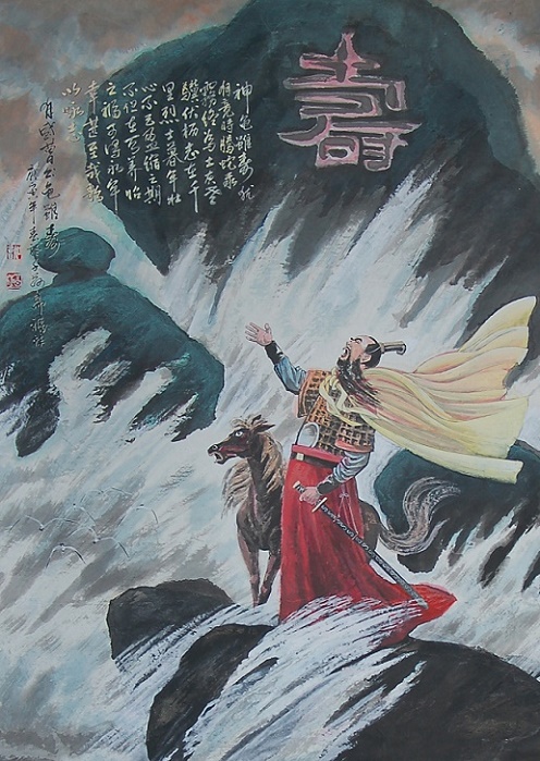 此约作于公元208年初他平定乌桓叛乱、消灭袁绍残余势力之后,南下征讨荆、吴之前。此时曹操已经五十三岁了,不由想起了人生的路程,所以诗一开头便无限感慨地吟道:“神龟虽寿,犹有竟时,螣蛇乘雾,终为土灰。”《庄子·秋水篇》说:“吾闻楚有神龟,死已三千岁矣。”曹操反其意而用之,说神龟纵活三千年,可还是难免一死呀!”《韩非子·难势篇》记载:“飞龙乘云,螣蛇游雾,云罢雾霁,而龙蛇与同矣!”“螣蛇”和龙一样能够乘云驾雾,本领可谓大矣!然而,一旦云消雾散,就和苍蝇蚂蚁一样,灰飞烟灭了!古来雄才大略之主如秦皇汉武,服食求仙,亦不免于神仙长生之术的蛊惑,而独曹操对生命的自然规律有清醒的认识,这在谶纬迷信猖炽的时代是难能可贵的。更可贵的是如何对待这有限的人生?曹操一扫汉末文人感叹浮生若梦、劝人及时行乐的悲调,慷慨高歌曰:“老骥伏枥,志在千里。烈士暮年,壮心不已。”曹操自比一匹上了年纪的千里马,虽然形老体衰,屈居枥下,但胸中仍然激荡着驰骋千里的豪情壮志。