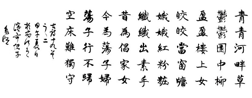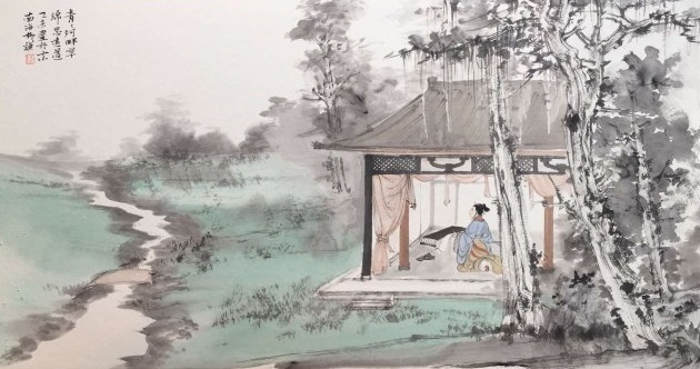 诗的语言并不经奇,只是用了民歌中常用的叠词,而且一连用了六个,但是贴切而又生动。青青与郁郁,同是形容植物的生机畅茂,但青青重在色调,郁郁兼重意态,且二者互易不得。柳丝堆烟,方有郁郁之感,河边草色,伸展而去,是难成郁郁之态的,而如仅以青青状柳,亦不足尽其意态。盈盈、皎皎,都是写美人的风姿,而盈盈重在体态,皎皎重在风采,由盈盈而皎皎,才有如同明月从云层中步出那般由隐绰到不鲜的感觉,试先后互易一下,必会感到轻重失当。娥娥与纤纤同是写其容色,而娥娥是大体的赞美,纤纤是细部的刻划,互易不得。六个叠字无一不切,由外围而中心,由总体而局部,由朦胧而清晰,烘托刻画了楼上女尽善尽美的形象,这里当然有一定的提炼选择,然而又全是依诗人远望或者悬想的的过程逐次映现的。也许正是因为顺想象的层次自然展开,才更帮助了当时尚属草创的五言诗人词汇用得如此贴切,不见雕琢之痕,如凭空营构来位置辞藻,效果未必会如此好。这就是所谓“秀才说家常话”。
