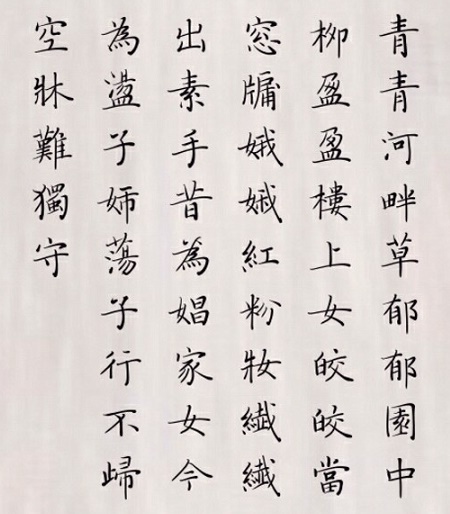 荡子行不归,空床难独守。出自汉代的一首文人五言诗《青青河畔草》,是《古诗十九首》之一。此诗运用了第三人称的写法,写出了少妇渴望爱情,渴望夫妻相依相偎,甚至举案齐眉的平凡生活。此诗结构直中有婉,虚实相映;描写细腻,突出细节;运用叠词,富有情韵。