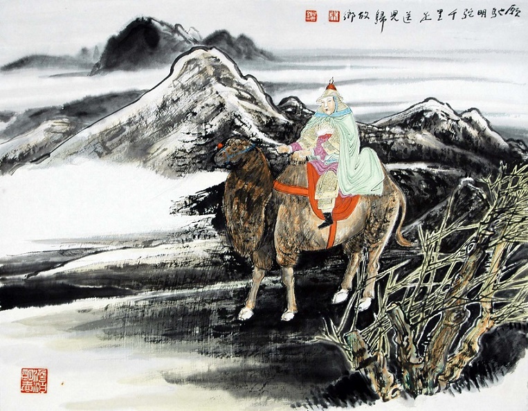 “可汗”是古代西北民族对君主的称呼,“天子”是封建社会汉族对君主的称呼。可是在这首诗中“可汗”却成了“天子”的同义词,不能再按照《广韵》中所谓“蕃王称”的本义了。这只能看做在《木兰诗》时代汉语里已有了外来语的成分。否则木兰去时是应“可汗”之征,而归来却受“天子”之赏,那不是前后矛盾了吗?