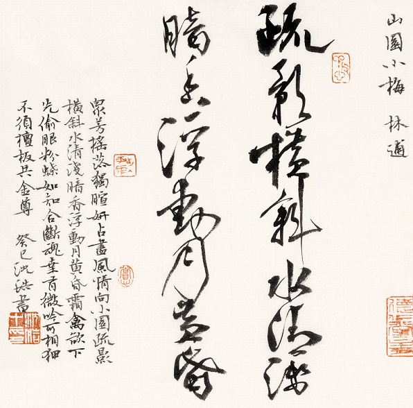 这组诗着意写意传神,采用侧面烘托的方法,渲染梅花清绝高洁的风骨,极富神韵。