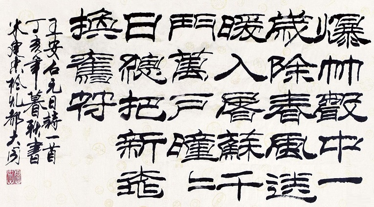 这是一首写古代迎接新年的即景之作,取材于民间习俗,敏感地摄取老百姓过春节时的典型素材,抓住有代表性的生活细节:点燃爆竹,饮屠苏酒,换新桃符,充分表现出年节的欢乐气氛,富有浓厚的生活气息。