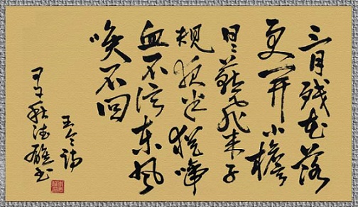 花落了虽又重开,燕子离去了还会回来,然而那眷恋春光的杜鹃,却半夜三更还在悲啼,不相信东风是唤不回来的。 后两句以拟人的手法来写了杜鹃鸟,塑造了一个执着的形象,借此表现自己留恋春天的情怀,字里行间充满凄凉的美感。 东风就是指春风,子规,杜鹃鸟经常在暮春啼叫。 诗人用子规夜半犹啼血,不信东风唤不回来表达竭尽全力留住美好时光的意思,既表达珍惜的心情,又显示了自信和努力的态度。这首诗的子规(杜鹃)与以往大部分诗里借喻哀伤,凄切的含义较不相同,带有比较积极的意义。