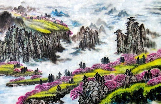 春雨迅猛,池塘水满,遥望群山,高低不齐,东边西侧,山路崎岖。热热闹闹地开了一阵的桃花和李花,此刻已开过时了,只见眼前春草萋萋,碧绿一片。