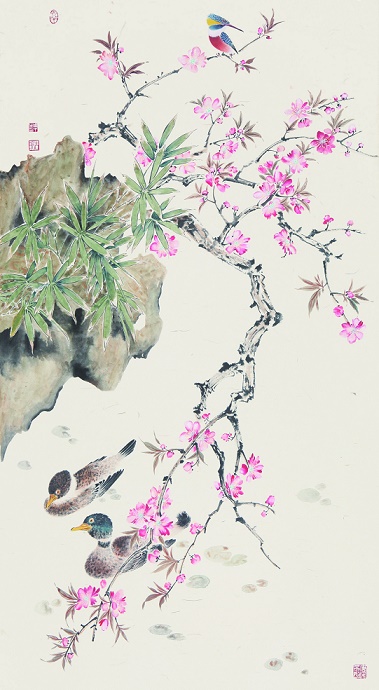 竹林外两三枝桃花初放,鸭子在水中游戏,它们最先察觉了初春江水的回暖。河滩上已经满是蒌蒿,芦笋也开始抽芽,而河豚此时正要逆流而上,从大海回游到江河里来了。