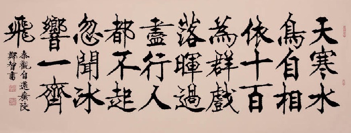 “天寒水鸟自相依,十百为群戏落晖”,开头两句既自然清新,又生动传神。“依”、“戏”二字,把水鸟天真烂漫之姿,表现得真是惟妙惟肖。它们仿佛不是一群鸟,而是一群天真无邪的孩子在相戏打闹。晚霞抚摸着它们,它们也正在尽情地享受着大自然给它们安排的和谐、安逸、自由的生活,这种物物相亲的情景,令人羡慕神往。