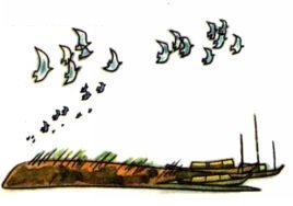 过尽行人都不起,忽闻冰响一齐飞。出自宋代诗人秦观的作品《还自广陵》。诗描写诗人自广陵返回高邮家乡途中所见。诗中分写水鸟两种不同景象:前三句写鸟儿怡然自得,与行人相安而处的情形。“自相依”、“戏落晖”、“都不起”分别形象地刻画了水鸟的不同神态,表现它们的安宁自在。末一句则转静为动,将水鸟惊起纷飞的景象有声有色地表现出来,神态宛然如见,情景生动如画。
