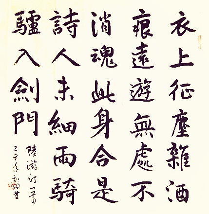 这是一首广泛传颂的名作,诗情画意,十分动人。然而,也不是人人都懂其深意,特别是第四句写得太美,容易使读者“释句忘篇”。如果不联系作者平生思想、当时境遇,不通观全诗并结合作者其他作品来看,便易误解。作者先写“衣上征尘杂酒痕,远游无处不销魂”。陆游晚年说过:“三十年间行万里,不论南北怯登楼”(《秋晚思梁益旧游》)。梁即南郑,益即成都。实际上以前的奔走,也在“万里”“远游”之内。这样长期奔走,自然衣上沾满尘土;而“国仇未报”,壮志难酬,“兴来买尽市桥酒……如钜野受黄河顿”(《长歌行》),故“衣上征尘”之外,又杂有“酒痕”。“征尘杂酒痕”是壮志未酬,处处伤心(“无处不销魂”)的结果,也是“志士凄凉闲处老”(《病起》)的写照。