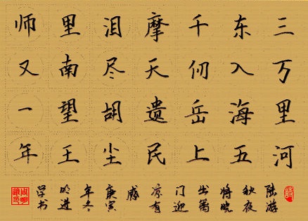 要想理解第二首诗,必须理解“五千仞岳”。于此有人说是泰山,因为泰山最高,被列在五岳之首,历代君王也多要去泰山封禅,用黄河与泰山作为中原大好山河的象征似乎是再恰当不过的了;赖汉屏认为岳指华山,理由是黄河与华山都在金人占领区内。陆游诗中的“岳”是指华山,可以从《宋史·陆游传》以及陆游的诗词中找到证据。《宋史·陆游传》中有这样的记载:“王炎宣抚川、陕,辟为干办公事。游为炎陈进取之策,以为经略中原必自长安始,取长安必自陇右始。”从中可以看出陆游收复中原的策略,就是通过四川进入陇右,先夺取长安,然后凭借关中的屏障进攻退守,像秦一样收复中原。这样的例子还有很多,陆游把这么多心思用在这一块土地上,可见他的主张是横贯其诗歌创作的始终的,那么“五千仞山上摩天”中的岳指华山自然就最恰当了。“三万里河东入海,五千仞岳上摩天。”诗一开始劈空而来,气象森严。山河本来是不动的,由于用了“入”、“摩”二字,就使人感到这黄河、华山不仅雄伟,而且虎虎有生气。两句一横一纵,北方中原半个中国的形胜,便鲜明突兀、苍莽无垠地展现出来了。奇伟壮丽的山河,标志着祖国的可爱,象征着民众的坚强不屈,已留下丰富的想象空间。然而,大好河山,陷于敌手,使人感到无比愤慨。这两句意境阔大深沉,对仗工整犹为余事。