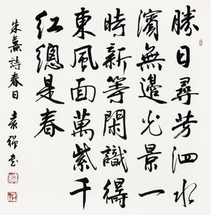 从字面上看,这首诗好像是写游春观感,但细究寻芳的地点是泗水之滨,而此地在宋南渡时早被金人侵占。朱熹未曾北上,当然不可能在泗水之滨游春吟赏。其实诗中的的“泗水”是暗指孔门,因为春秋时孔子曾在洙、泗之间弦歌讲学,教授弟子。因此所谓“寻芳”即是指求圣人之道。“万紫千红”喻孔学的丰富多彩。诗人将圣人之道比作催发生机、点燃万物的春风。这其实是一首寓理趣于形象之中的哲理诗。