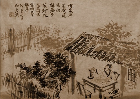 时间已过午夜,已约请好的客人还没有来,我无聊地轻轻敲着棋子,震落了点油灯时灯芯结出的疙瘩。