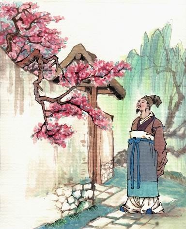 此诗所写的大致是江南二月,正值云淡风轻、阳光明媚的时节。诗人乘兴来到一座小小花园的门前,想看看园里的花木。他轻轻敲了几下柴门,没有反响;又敲了几下,还是没人应声。诗人猜想,大概是怕园里的满地青苔被人践踏,所以闭门谢客的。诗人在花园外面寻思着,徘徊着,很是扫兴。他在无可奈何、正准备离去时,抬头之间,忽见墙上一枝盛开的红杏花探出头来。“春色满园关不住,一枝红杏出墙来。“诗人从一枝盛开的红杏花,领略到满园热闹的春色,感受到满天绚丽的春光,总算是不虚此行了。