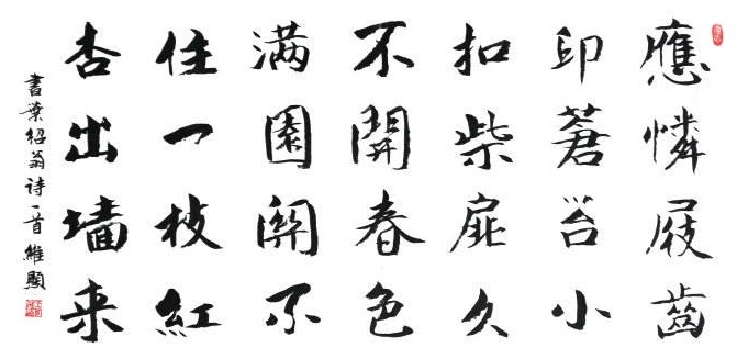 其二是“以少总多”,含蓄蕴藉。比如“一枝红杏”就是“满园春色”具体而集中的表现,一枝红杏就代表了墙内百花。