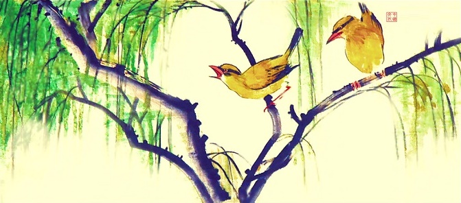 黄莺在这里是被赞美的,它的勤劳换来了洛阳的美丽,而这里面如果没有春天的力量,鸟儿固然不会飞来编织锦绣,柳树的枝条也没有翠绿的颜色,织起来也就不会那么艳丽了。所以赞美黄莺其实就是在赞美春天的勃勃生机,赞美春天带来了万物的欣欣向荣。诗人心中对春天的崇敬之情,通过“多少功夫织得成”来表达,一句感叹将情绪宣泄了出来,和前面的诗句相辅相成,浑然一体。