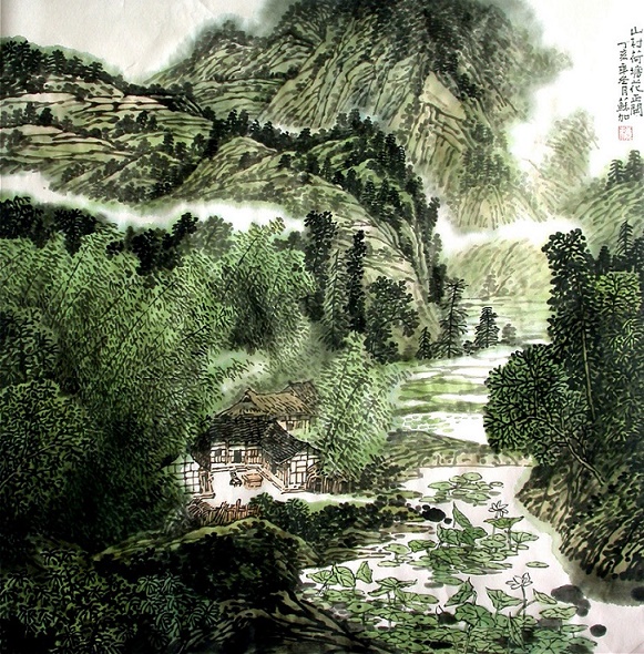 没人去注意那门外纷纷飘落的红花,树木的枝条低垂,浓郁的绿阴,直铺向海角天涯。树上的黄莺儿啼声渐渐停下,春草芊芊,我独自站立在池塘边,听着青蛙不停地叫着,一片喧哗。