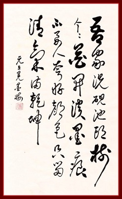 这画仿佛是从我的洗砚池边生长的一棵梅花,朵朵梅花都似乎是洗笔后淡墨留下的痕迹而没有鲜艳的颜色,因为它并不需要别人去夸许它的颜色,在意的只是要把清淡的香气充满在天地之间。