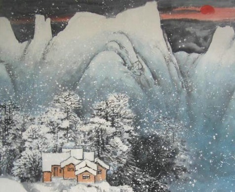 《山中雪后》描绘了一幅冬日山居雪景图。清晨,诗人推开门,外面天寒地冻、银装素裹,刚刚升起的太阳也显得没有活力。院子里,屋檐下长长的冰溜子没有融化的迹象,墙角的梅花也好像被冻住了,迟迟没有开放的意思。
