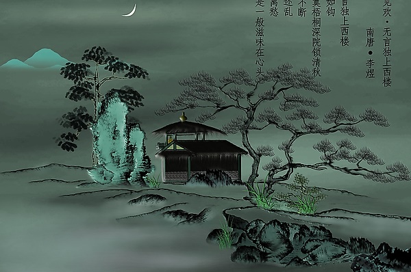 “月如钩,寂寞梧桐深院锁清秋”,寥寥12个字,形象地描绘出了词人登楼所见之景。仰视天空,缺月如钩。“如钩”不仅写出月形,表明时令,而且意味深长:那如钩的残月经历了无数次的阴晴圆缺,见证了人世间无数的悲欢离合,如今又勾起了词人的离愁别恨。俯视庭院,茂密的梧桐叶已被无情的秋风扫荡殆尽,只剩下光秃秃的树干和几片残叶在秋风中瑟缩,词人不禁“寂寞”情生。然而,“寂寞”的不只是梧桐,即使是凄惨秋色,也要被“锁”于这高墙深院之中。而“锁”住的也不只是这满院秋色,落魄的人,孤寂的心,思乡的情,亡国的恨,都被这高墙深院禁锢起来,此景此情,用一个愁字是说不完的。