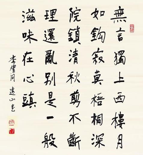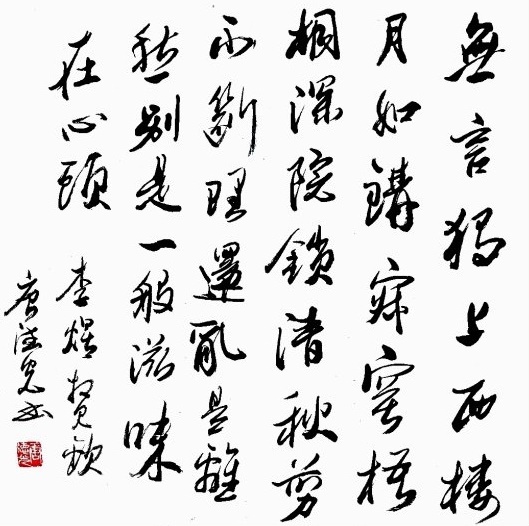 无言独上西楼,月如钩。寂寞梧桐深院锁清秋。