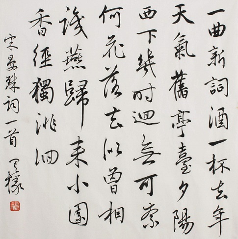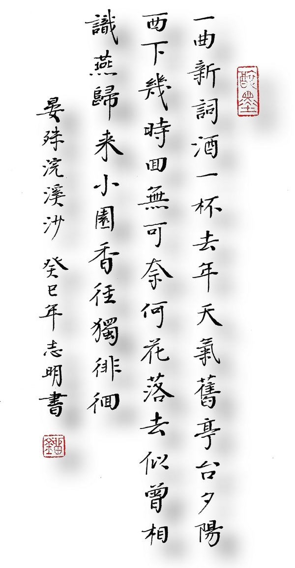 填曲新词品尝一杯美酒,时令气候亭台池榭依旧,西下的夕阳几时才能回转?无可奈何中百花再残落,似曾相识的春燕又归来,独自在花香小径里徘徊。