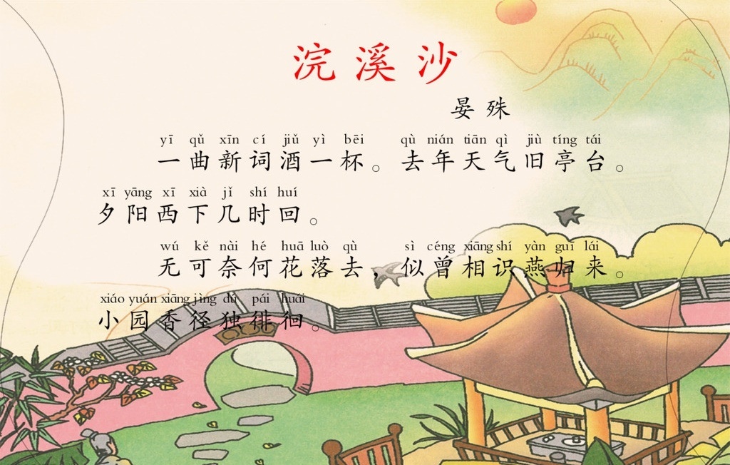 一曲新词酒一杯,去年天气旧亭台。夕阳西下几时回?