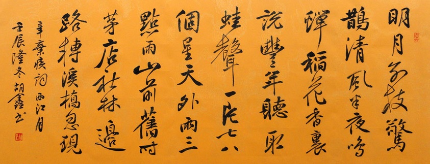 ⑴西江月:唐教坊曲名,后用作词牌名。调名取自李白《苏台览古》“只今唯有西江月,曾照吴王宫里人”。西江是长江的别称,调咏吴王西施的故事。又名“白蘋香”“步虚词”“晚香时候”“玉炉三涧雪”“江月令”。双调五十字,平仄两协。后阕字句作法与前阕相同。