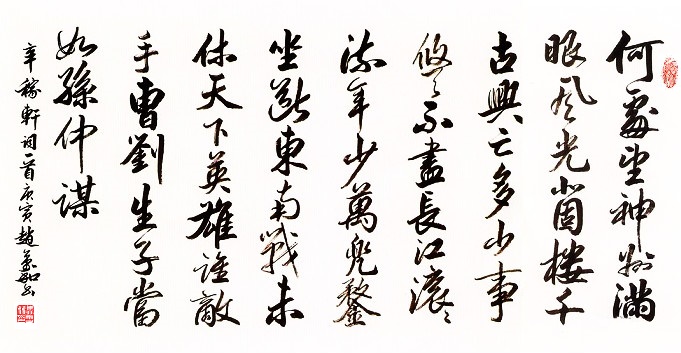 辛弃疾艺术风格多样,以豪放为主曾上《美芹十论》与《九议》,现存词600多首,条陈战守之策。其词抒写力图恢复国家统一的爱国热情,倾诉壮志难酬的悲愤,对当时执政者的屈辱求和颇多谴责;也有不少吟咏祖国河山的作品。题材广阔又善化用前人典故入词,风格沉雄豪迈又不乏细腻柔媚之处。由于与当政的主和派政见不合,后被弹劾落职,退隐,公元1207年秋,辛弃疾逝世,享年68岁。《破阵子·为陈同甫赋壮词以寄之》、《永遇乐·京口北固亭怀古》、《水龙吟·登建康赏心亭》、《菩萨蛮·书江西造口壁》等均有名。但部分作品也流露出抱负不能实现而产生的消极情绪。有《稼轩长短句》。今人辑有《辛稼轩诗文钞存》。