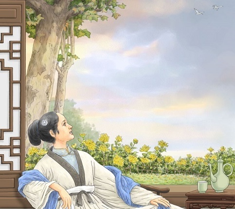 这时看见那些菊花,才发觉花儿也已憔悴不堪,落红满地,再无当年那种“东篱把酒黄昏后,有暗香盈袖”的雅致了。词人想:以往丈夫在世时的日子多么美好,诗词唱和,整理古籍,可如今呢?只剩下自己一个人在受这无边无际的孤独的煎熬了。故物依然,人面全非。“旧时天气旧时衣,只有情怀,不得似往时。”独对着孤雁残菊,更感凄凉。手托香腮,珠泪盈眶。怕黄昏,捱白昼。对着这阴沉的天,一个人要怎样才能熬到黄昏的来临呢?漫长使孤独变得更加可怕。独自一人,连时间也觉得开始变慢起来。