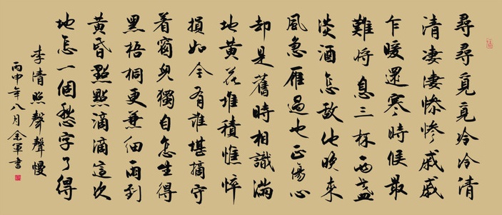 寻寻觅觅,冷冷清清,凄凄惨惨戚戚。乍暖还寒时候,最难将息。三杯两盏淡酒,怎敌他、晚来风急?雁过也,正伤心,却是旧时相识。