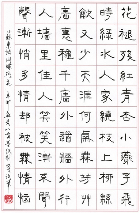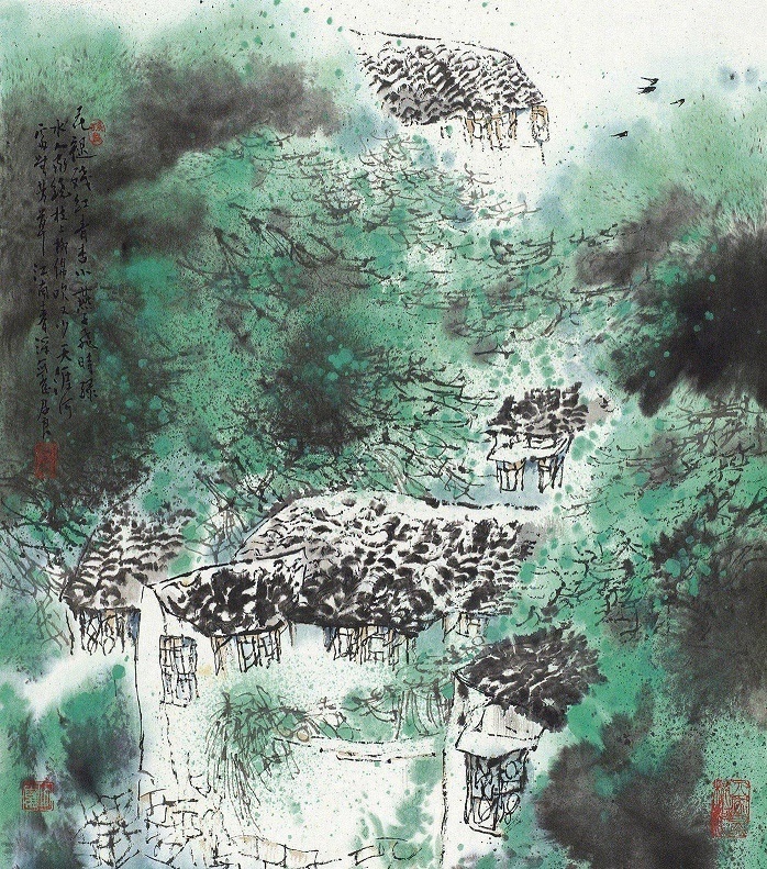 “花褪残红青杏小。”开头一句描写的是暮春景象,这是说,暮春时节,杏花凋零枯萎,枝头只挂着又小又青的杏子。作者的视线是从一棵杏树开始的:花儿已经凋谢,所余不多的红色也正在一点一点褪去,树枝上开始结出了幼小的青杏。“残红”,他特别注意到初生的“青杏”,语气中透出怜惜和喜爱,有意识地冲淡了先前浓郁的伤感之情。“燕子飞时,绿水人家绕。”燕子在空中飞来飞去,绿水环绕着一户人家。这两句又描绘了一幅美丽而生动的春天画面,但缺少了花树的点缀,仍显美中不足。“绕”字,曾有人以为应是“晓”。通读全词,并没有突出的景物表明这是清晨的景色,因而显得没有着落。而燕子绕舍而飞,绿水绕舍而流,行人绕舍而走,着一“绕”字,则非常真切。“枝上柳棉吹又少,天涯何处无芳草?”树上的柳絮在风的吹拂下越来越少,春天行将结束,难道天下之大,竞找不到一处怡人的景色吗?柳絮纷飞,春色将尽,固然让人伤感;而芳草青绿,又自是一番境界。苏轼的旷达于此可见。“天涯”一句,语本屈原《离骚》“何所独无芳草兮,尔何怀乎故宇”,是卜者灵氛劝屈原的话,其思想与苏轼在《定风波》中所说的“此心安处是吾乡”一致。最后竟被远谪到万里之遥的岭南。此时,他已人到晚年,遥望故乡,几近天涯。这境遇和随风飘飞的柳絮何其相似。