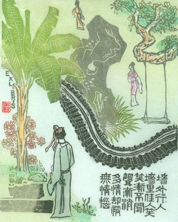 “墙里秋千墙外道。墙外行人,墙里佳人笑。”墙外是一条道路,行人从路中经过,只听见墙里有荡秋千的声音,一阵阵悦耳的笑声不时从里面传出,原来是名女子在荡秋千。这一场景顿扫上阕之萧索,充满了青春的欢快旋律,使行人禁不住止步,用心地欣赏和聆听着这令人如痴如醉的欢声笑语。作者在艺术处理上十分讲究藏与露的关系。这里,他只写露出墙头的秋千和佳人的笑声,其它则全部隐藏起来,让“行人”去想象,在想象中产生无穷意味。小词最忌词语重复,但这三句总共十六字,“墙里”、“墙外”分别重复,竟占去一半。而读来错落有致,耐人寻味。墙内是家,墙外是路;墙内有欢快的生活,年轻而富有朝气的生命;墙外是赶路的行人。行人的心情和神态如何,作者留下了空白。不过,在这无语之中,有一种冷落寂寞之感。“笑渐不闻声渐悄,多情却被无情恼。”也许是行人伫立良久,墙内佳人已经回到房间;也许是佳人玩乐依旧,而行人已渐渐走远。总之,佳人的笑声渐渐听不到了,四周显得静悄悄。但是行人的心却怎么也平静不下来。墙院里女子的笑声渐渐地消失了,而墙外的行人听到笑声后却心绪难平。他听到女子甜美的笑声,却一直无法看到女子的模样;心情起伏跌宕不已,而女子也并不知道墙外有个男子正为她苦恼。男子多情,女子无情。这里的“多情”与“无情”常被当爱情来解释,有感怀身世之情,有思乡之情,有对年轻生命的向往之情,有报国之情,等等,的确可谓是“有情”之人;而佳人年轻单纯、无忧无虑,既没有伤春感时,也没有为人生际遇而烦恼,真可以说是“无情”。作者发出如此深长的感慨,那“无情”之人究竟会撩拨起他什么样的思绪,对此,他并没回答。也许是勾起他对美好年华的向往,也许是对君臣关系的类比和联想,也许倍增华年不再的感慨,也许是对人生哲理的一种思索和领悟,作者并未言明,却留下了丰富回味、想象的空白。