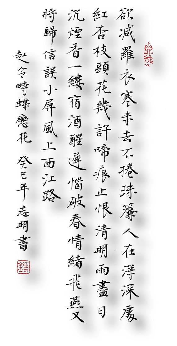 欲减罗衣寒未去,不卷珠帘,人在深深处。红杏枝头花几许?啼痕止恨清明雨。