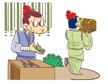 楚人拿着被退回的珍珠,十分尴尬地站在那里。他原本以为别人会欣赏他的珍珠,可是没想到精美的外包装超过了包装盒内的价值,以致于“喧宾夺主”,令楚人哭笑不得。