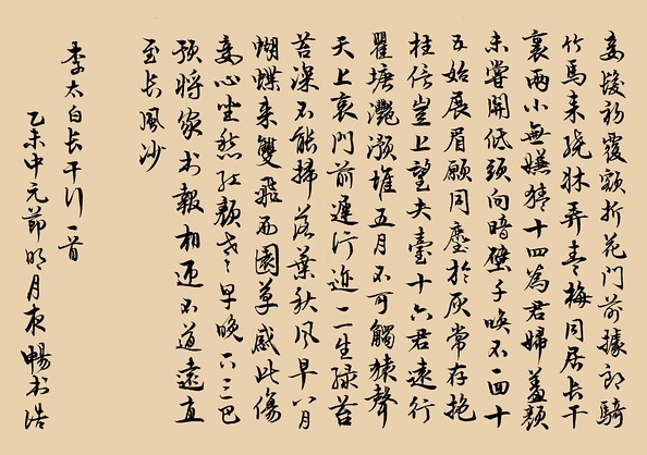 《李太白诗醇》:严云:“两小无嫌猜”,极寻常情事,说得出。又云:“低头”云云。盖常情羞生,此却羞又云:“不叮触”、“天上哀”、或迈或远,难为情。