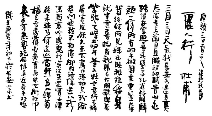章碣《曲江》诗有“落絮却笼他树白”之句,可见曲江沿岸盛植杨柳。又隋唐时期,关中地域气温较高,上巳(阴历三月三日)飘杨花,当是实情。“杨花”二句似赋而实比兴,暗喻杨国忠与虢国夫人的淫乱。乐史《杨太真外传》载:“虢国又与国忠乱焉。略无仪检,每入朝谒,国忠与韩、虢连辔,挥鞭骤马,以为谐谑。从官监妪百余骑。秉烛如昼,鲜装袨服而行,亦无蒙蔽。”他们倒挺开通,竟敢招摇过市,携众遨游,公开表演种种肉麻丑态。既然如此,“先时丞相未至,观者犹得近前,乃其既至,则呵禁赫然”(黄生语),不许游人围观,固然是为了显示其“炙手可热”权势之烜赫,但觥筹交错,酒后耳热,放浪形骸之外,虽是开通人,也有不想让旁人窥见的隐私,这也是重要的原因。“春色满园关不住,一枝红杏出墙来”,青鸟衔去的一方红手帕,便于有意无意中泄露了一点春光。